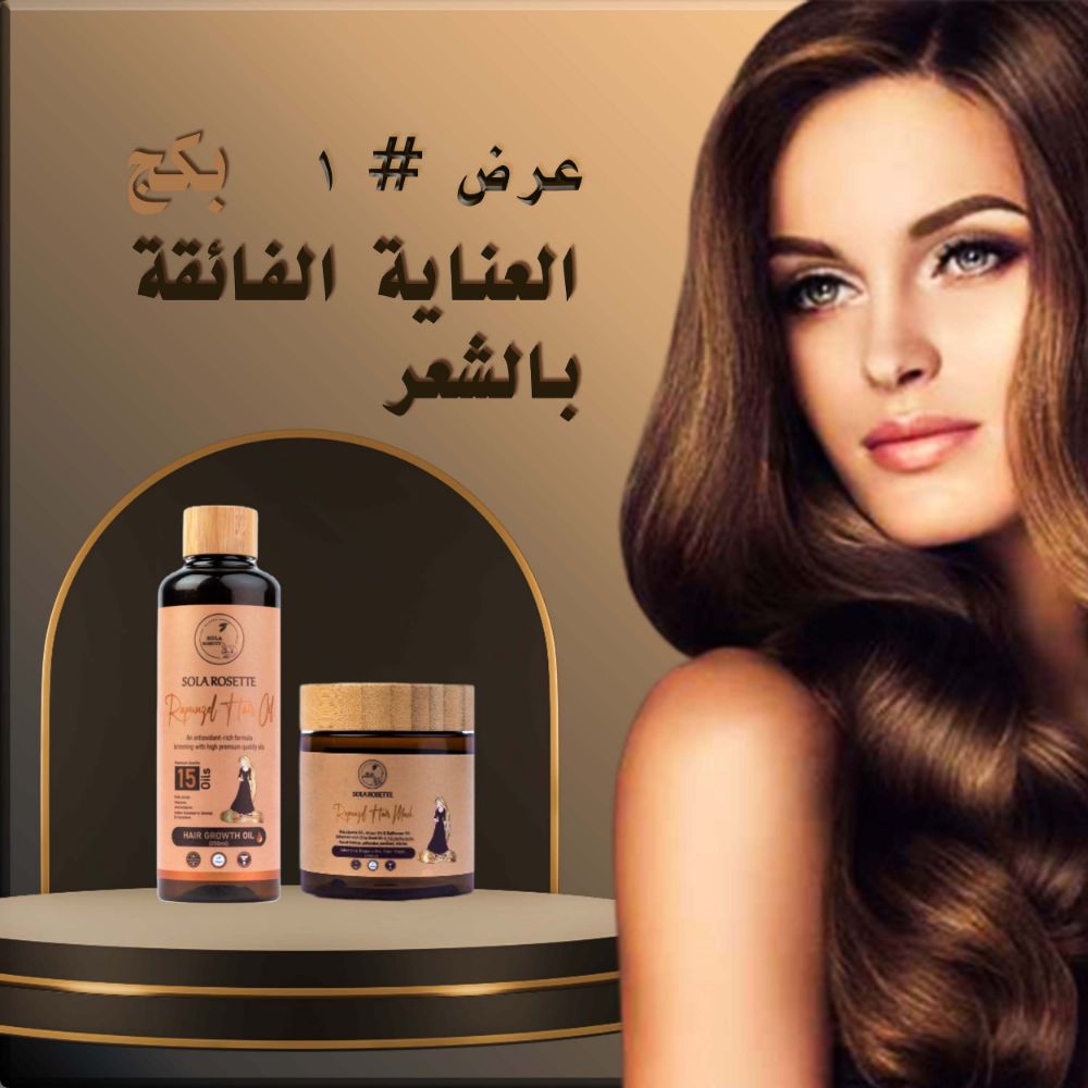 بكج العناية الفائقة بالشعر 1. زيت رابونزيل للشعر ( لتقوية وتكثيف الشعر) 2. ماسك رابونزيل للشعر ( لترميم وعلاج الشعر المكثف) vf
