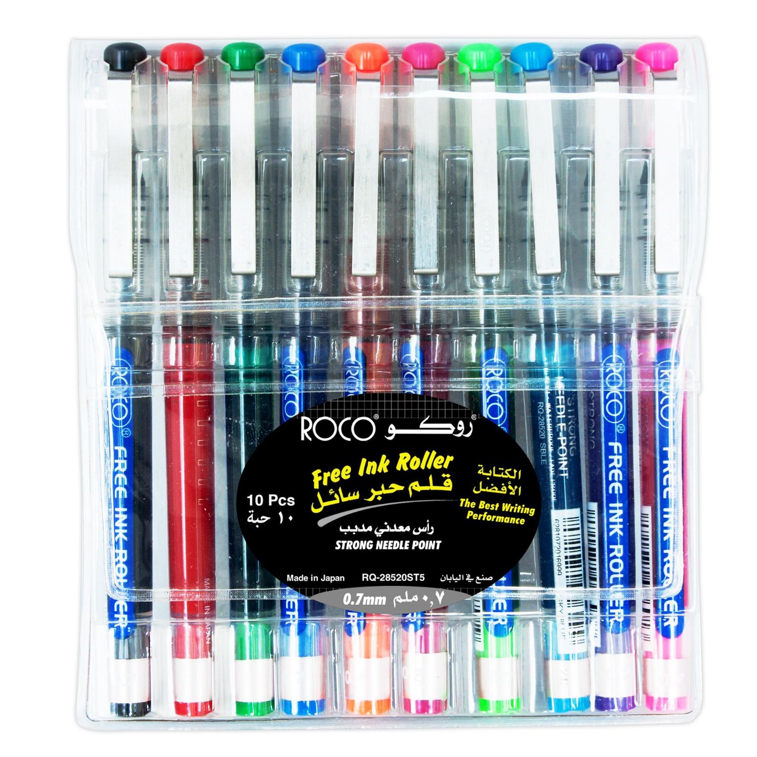 روكو فري انك رولر قلم حبر سائل، ألوان حبر متنوعة، 0‎.7‎ MM، رأس ابرة، 10‎ Piecesvf