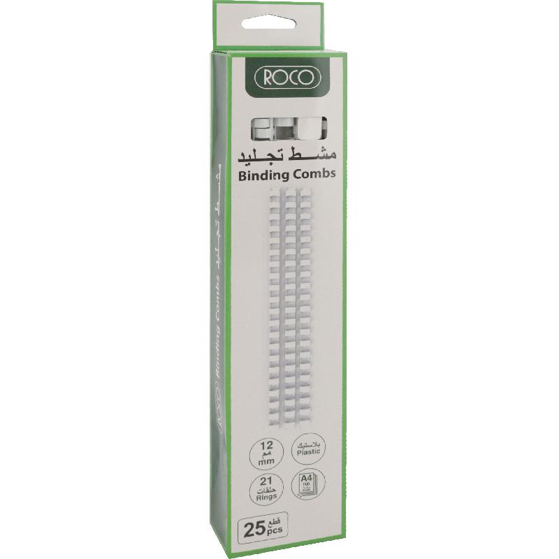 روكو مشط حلزوني للملازم، السعة 12 مم، بلاستيك، A4، ابيض