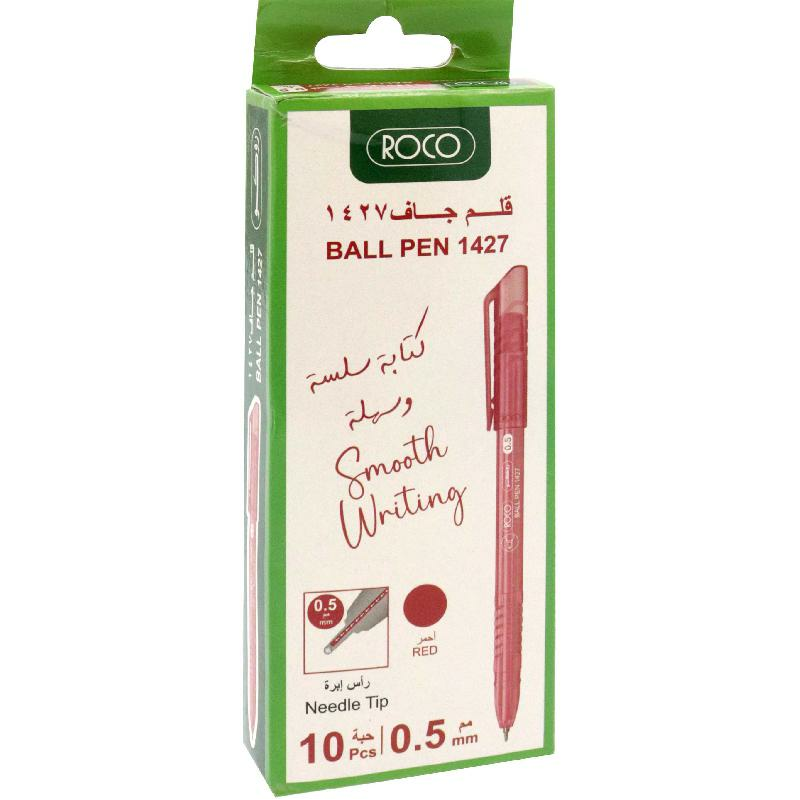 روكو 1425 قلم حبر جاف، أحمر لون الحبر، 0.5 مم، رأس حبر كروية، 10‎ Pens