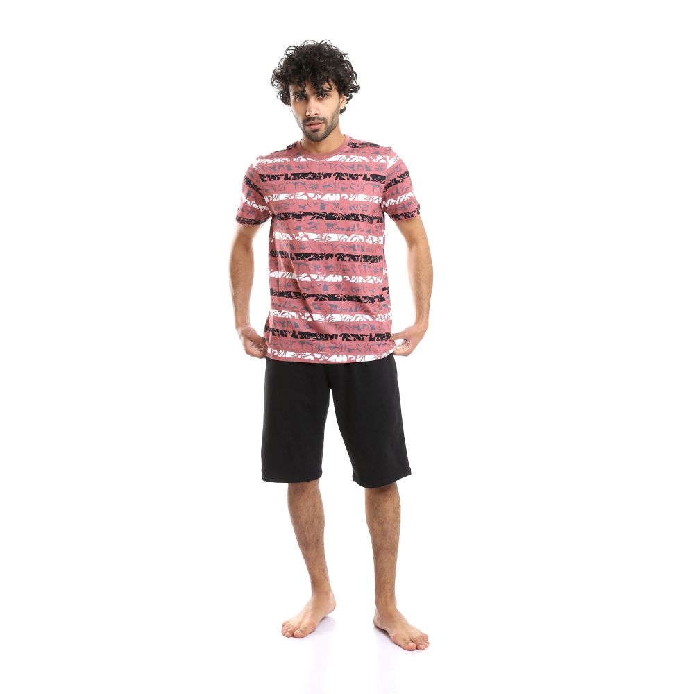 طقم بيجامة للرجال مطبوع بنقشة زهور وشورت سادة