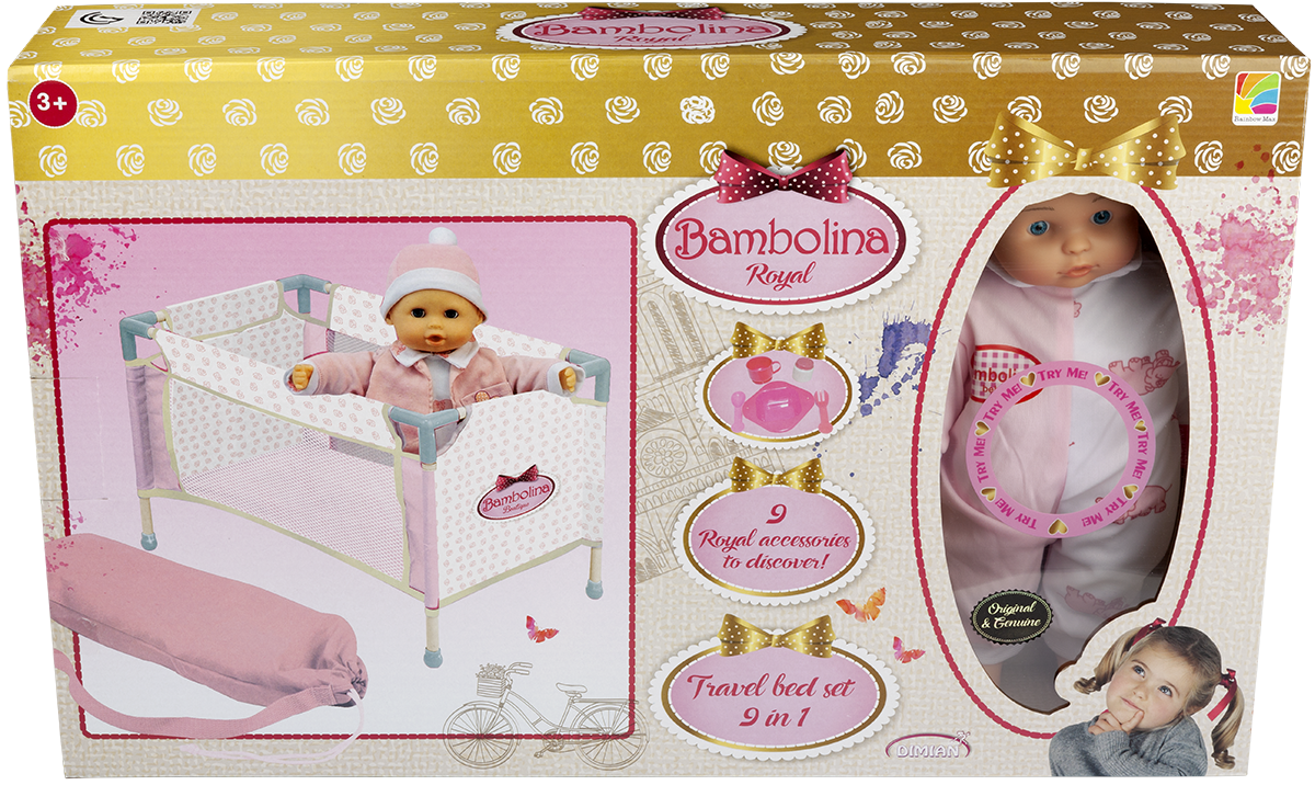 عروسة بامبولينا رويال مع طقم سرير سفر 9 في 1vf