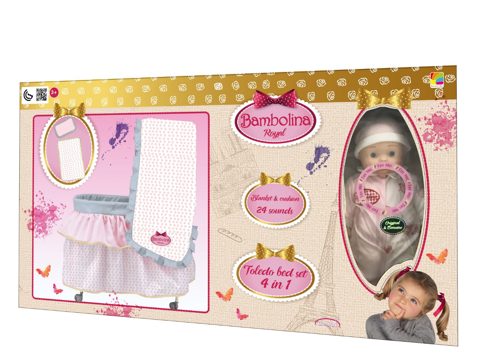 عروسة بامبولينا رويال مع طقم سرير متحرك 4 في 1vf