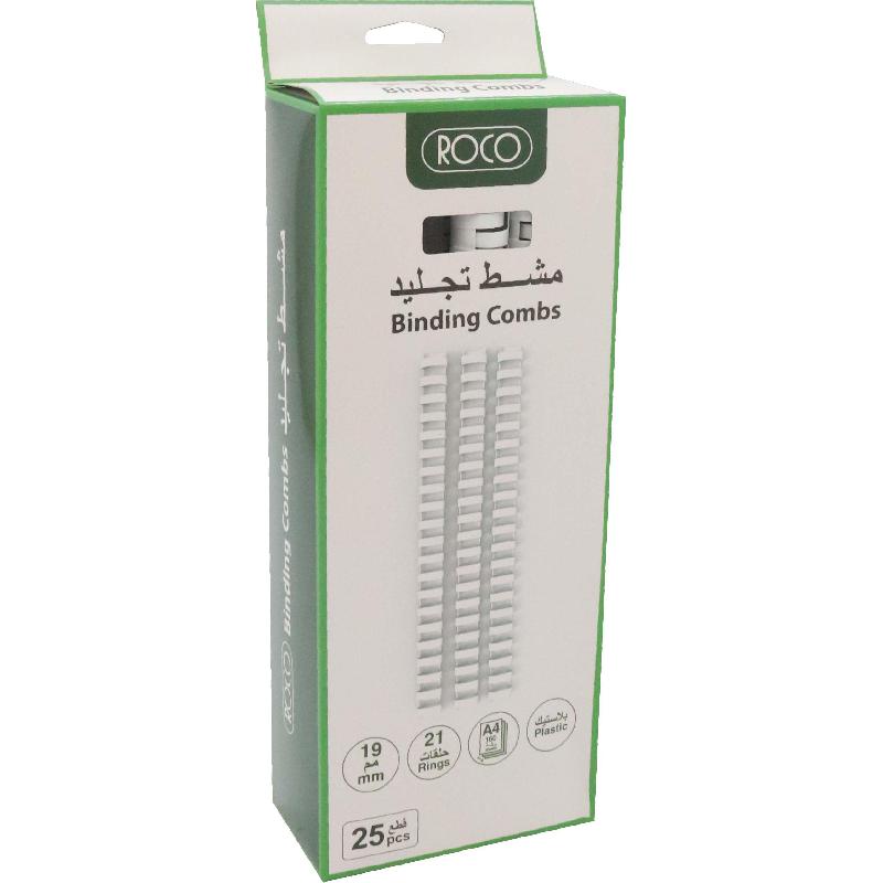 روكو مشط حلزوني للملازم، السعة 19 مم، بلاستيك، A4، ابيض
