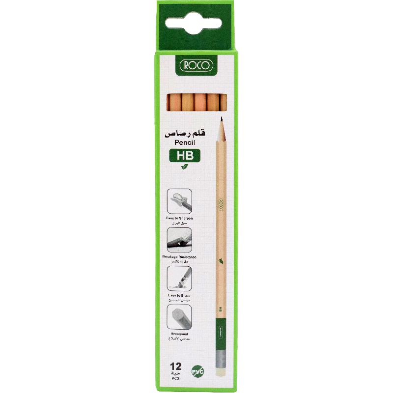 روكو ممتاز Hexagonal Natural Barrel، with Eraser قلم رصاص، HB، معيار، GR 144 حبة