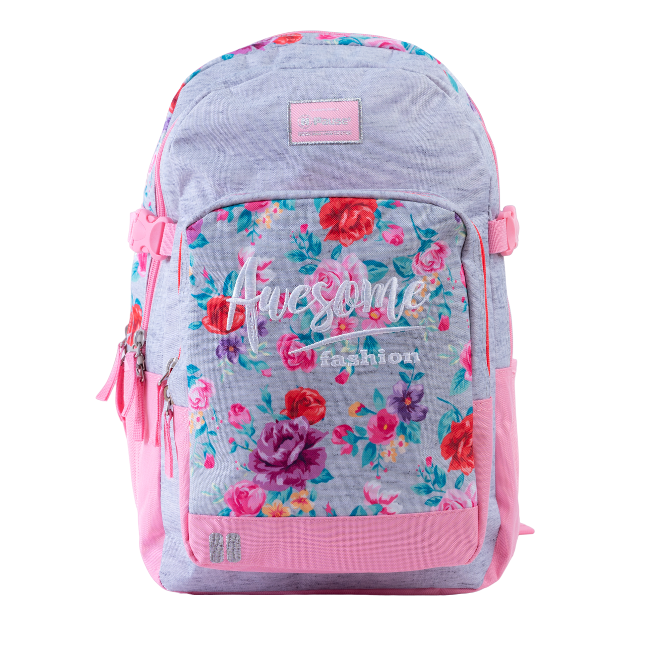 شنطةظهربوز رمادي زهري + جيب جوال + مقلمية