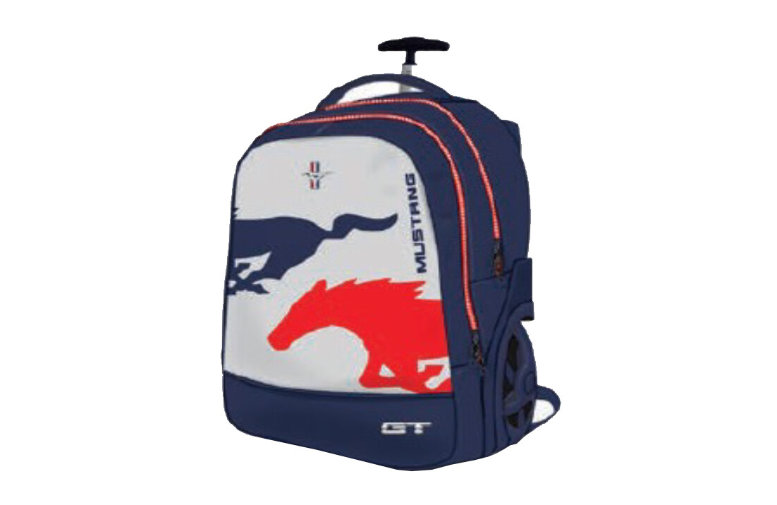شنطة ترولي موستنج ازرق وابيض +مقلمية