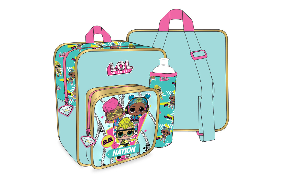 شنطة ظهر لول سماوي+زمزميةولنش بوكسvf