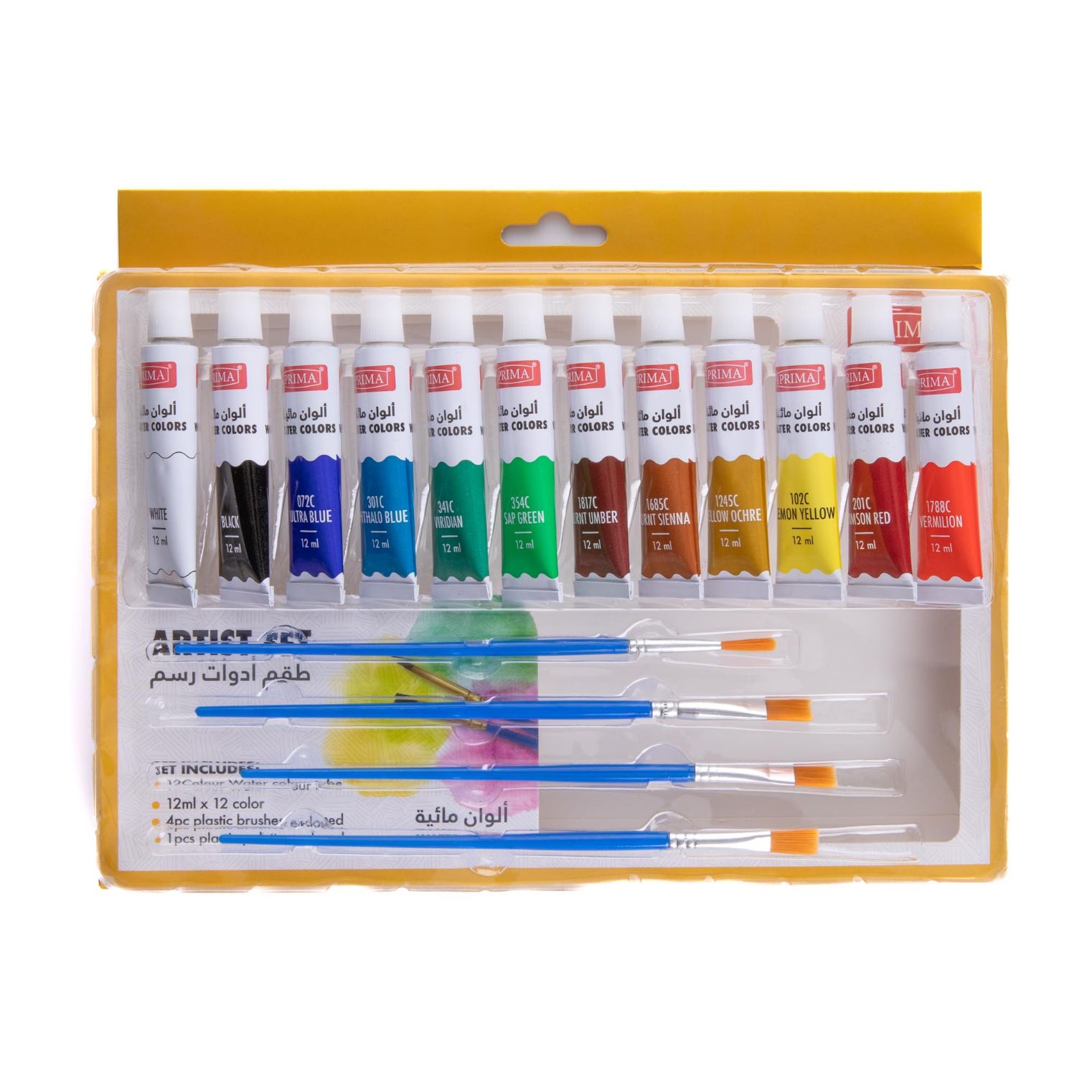 طقم الوان مائيه عصار 12م 12لون مع بالته و فرش بريما