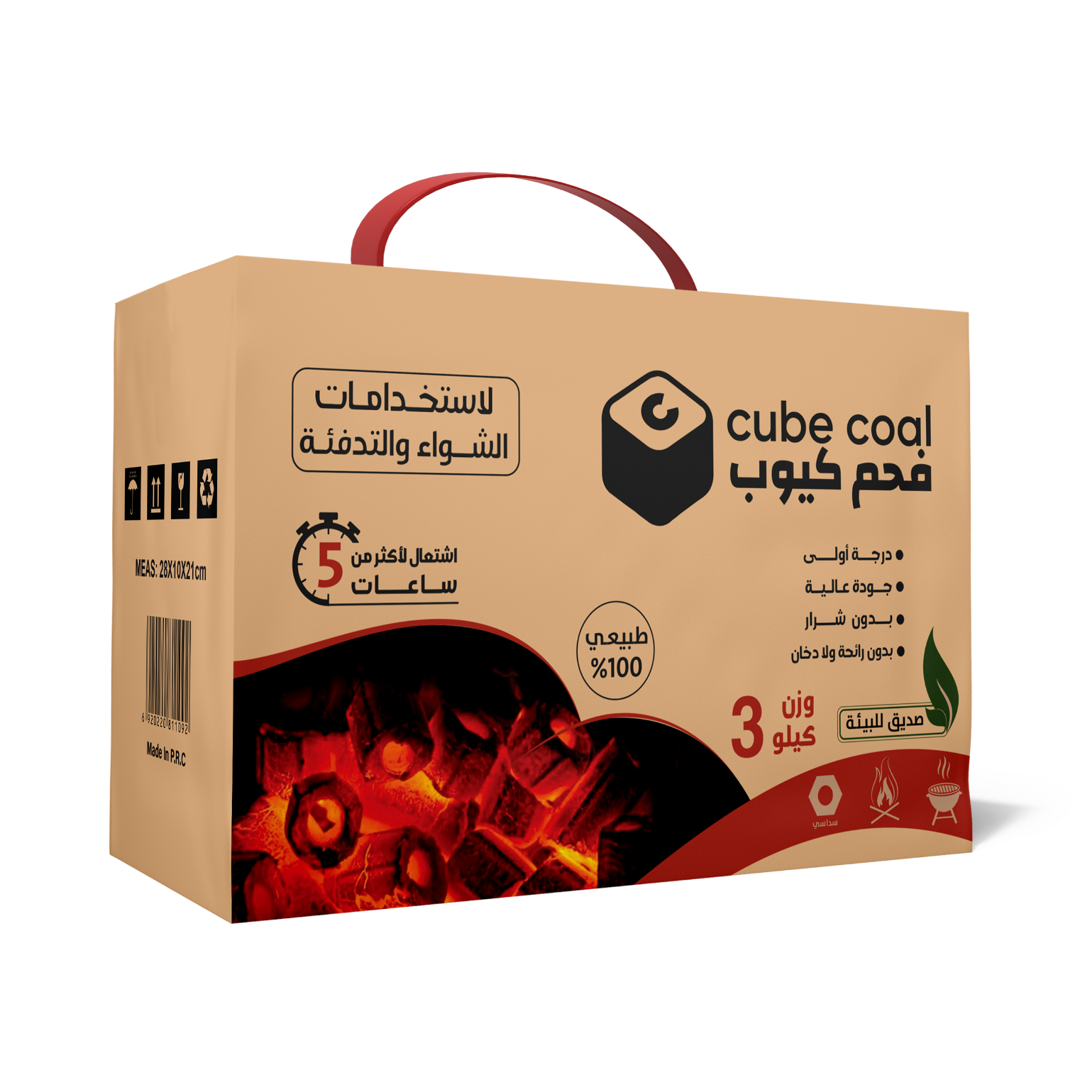 فحم كيوب السداسي يدوم لوقت أطول إلى 5 ساعات لاستخدامات الشواء والتدفئة - درجة أولى - جودة عالية- بدون شرار - بدون رائحة ولادخان -سهول الحمل والتخزينvf