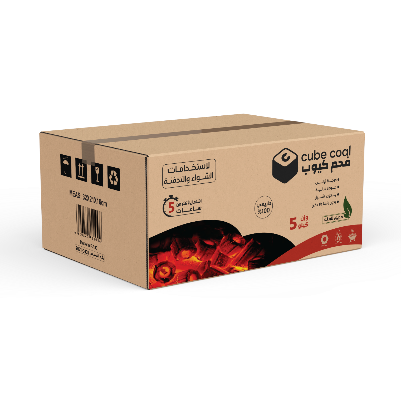 فحم كيوب السداسي يدوم لوقت أطول إلى 5 ساعات لاستخدامات الشواء والتدفئة - درجة أولى - جودة عالية- بدون شرار - بدون رائحة ولادخانvf